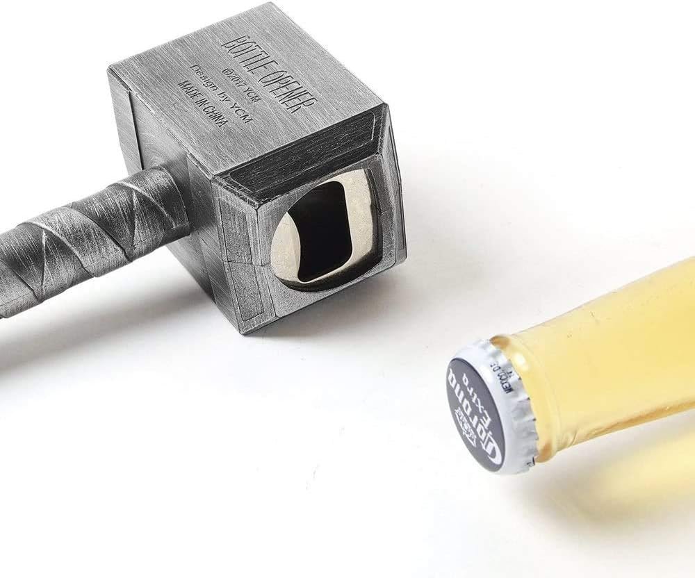 Otwieracz do butelek Thor Hammer to stylowy gadżet w kształcie młota Thora, wykonany z trwałego tworzywa ABS i metalu. Jego wymiary to 16,5 x 7 cm. Doskonale sprawdzi się jako praktyczne narzędzie do otwierania butelek i dekoracja w stylu retro. Idealny na prezent dla fanów Marvela, nadaje się do użytku domowego, w barach, restauracjach i na imprezach. Lekki i wygodny w przechowywaniu.