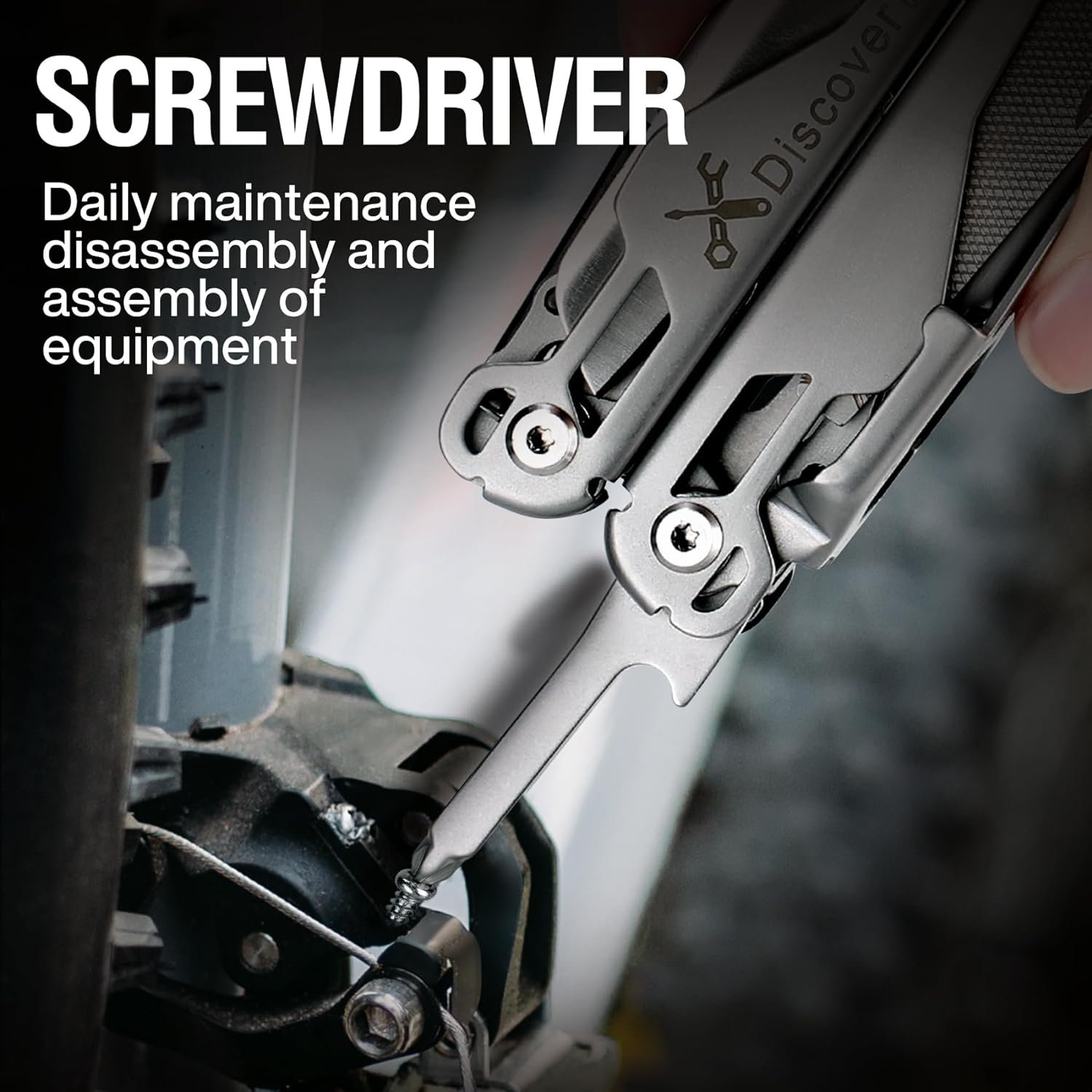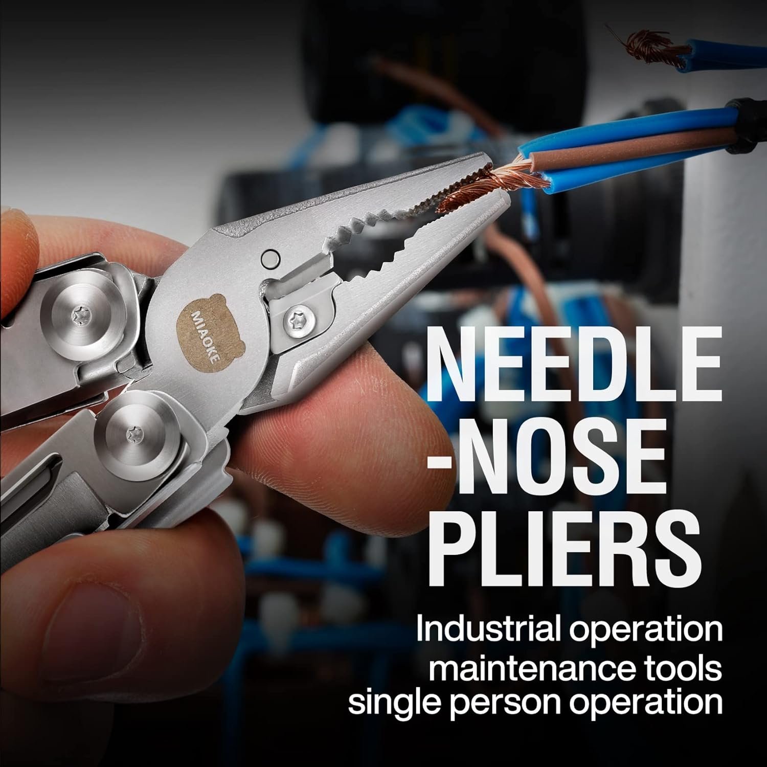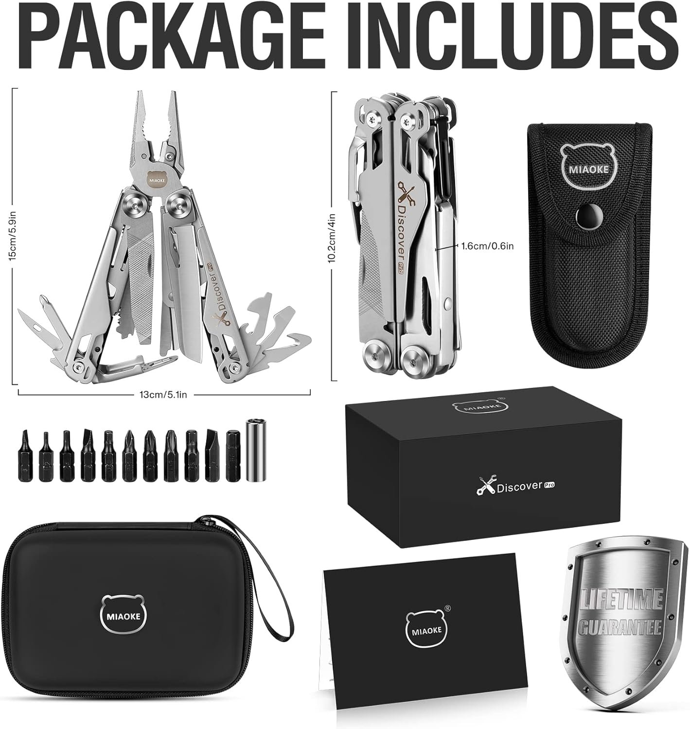 IDEALNY PREZENT DLA MĘŻCZYZN: Wielofunkcyjne narzędzie MIAOKE Discovery Series 23 w 1, zawiera szczypce, nóż, piłę, otwieracz, śrubokręty i wiele innych. Wykonane z wysokiej jakości materiału 440A, trwałe i ergonomiczne. Doskonały na prezent dla taty, dziadka, przyjaciela. Niezastąpiony w przygodach na świeżym powietrzu.